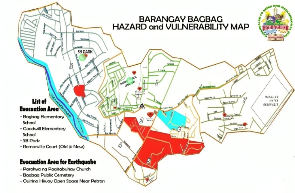 May mga nakatalagang evacuation center at ligtas na lugar ang Barangay Bagbag, tulad ng Bagbag Elementary School, Goodwill Elementary School, SB Park, at Remarville Court, para sa mga matinding pagbaha. Mahalaga na bawat tahanan ay alam ang pinakaligtas na ruta papunta sa mga lokasyong ito. Magtalaga ng mga responsibilidad sa bawat miyembro ng pamilya upang maging organisado ang evacuation. Para sa mga pamilya na may sanggol o nakatatandang miyembro, maghanda ng karagdagang gamit tulad ng gatas, diaper, o assistive devices. Huwag ding kalimutang maghanda ng pagkain at carrier para sa inyong mga alagang hayop.